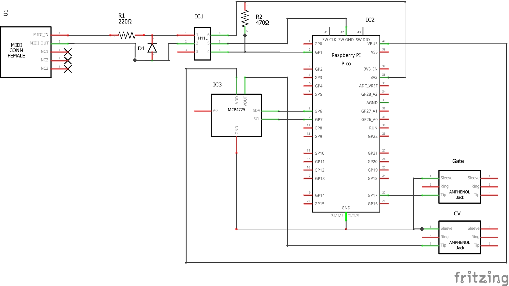 I’ve been toying with the idea of building a MIDI to CV converter for at least a decade. Now I’ve finally had a go using MicroPython on the Raspberry Pi Pico.
